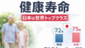 女性は世界1位、男性も世界6位という高い水準にある。特に日本人女性は 約40年以上にわたり世界で最も平均寿命が長い とされている。